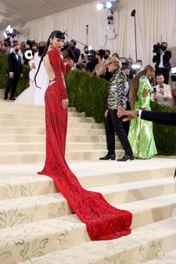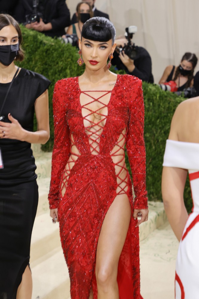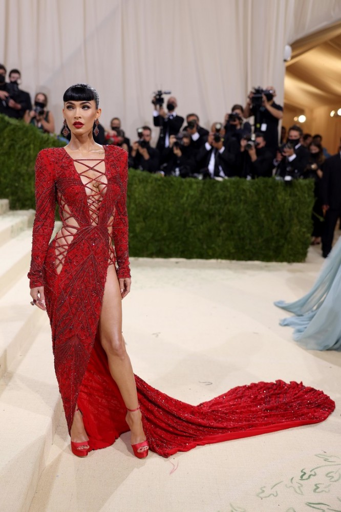 Pe covorul roșu, Fox a pozat într-o luxoasă rochie stacojie Dundas cu un spate deschis spectaculos (și nu numai) și o lungime incredibilă a tivului de câțiva metri. După ce s-a reîncarnat ca Dita von Teese, Megan nu a uitat nici de bretonul, care a fost iconic pentru actriță, care a devenit ultima coardă a imaginii sale uimitoare. A rămas o singură întrebare: "Unde este Machine Gun Kelly?"