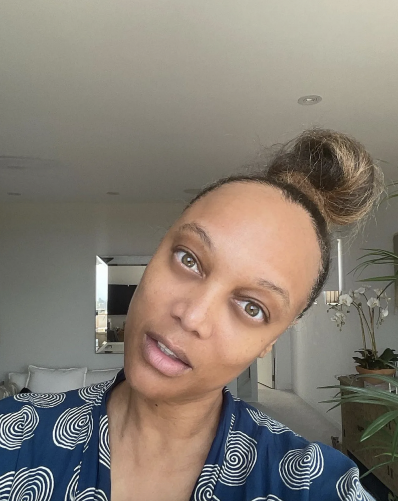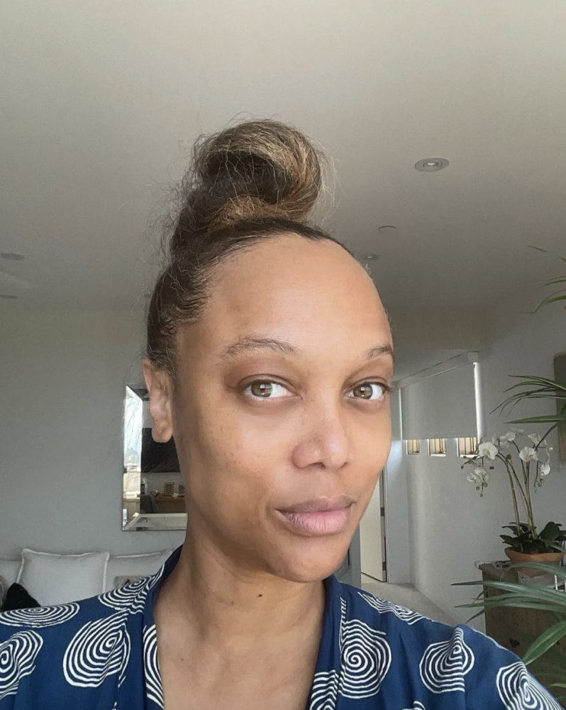 Tyra Banks a decis să susțină tendința de la Hollywood pentru naturalețe și acceptarea propriei vârste. Modelul de vârstă în vârstă de 47 de ani și prezentatorul TV au împărtășit o serie de selfie-uri fără machiaj cu abonații, care prezintă, de asemenea, șuvițe gri pe părul ei. De asemenea, a confirmat că de obicei poartă peruci pe platou.